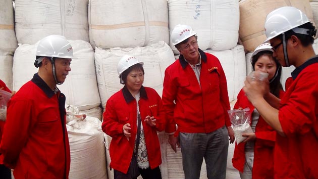 ? ? 杜威夷向班諾特詳細介紹了企業(yè)建設(shè)運營情況,并在生產(chǎn)工藝、產(chǎn)品種類、供貨能力等方面做了深入細致的交流。會談后,班諾特實地考察了企業(yè)原料采購、生產(chǎn)流程及倉儲運輸?shù)雀鱾€環(huán)節(jié),他對秦皇島分公司先進的生產(chǎn)設(shè)備、完善的管理體系及卓越的產(chǎn)品質(zhì)量贊不絕口,當(dāng)即簽下“五洲豐”牌顆粒硫酸鉀在巴西市場的獨家代理協(xié)議。