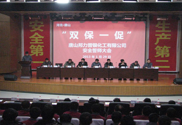 ? ? 近日,唐山邦力晉銀化工有限公司(簡稱“晉銀公司”)在公司本部召開以“保安全、保全勤、促生產(chǎn)”為主題的安全生產(chǎn)誓師動(dòng)員大會(huì),公司領(lǐng)導(dǎo)班子成員及員工150余人參會(huì)。 ? ?