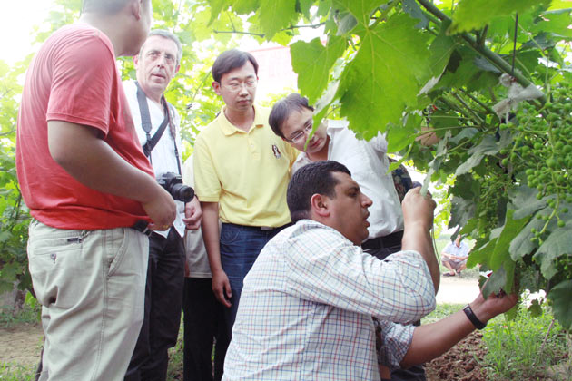 ? ? ? ?推廣會(huì)當(dāng)天,西班牙LIDA和MOREDA公司的技術(shù)人員還來(lái)到渭南地區(qū)葡萄園示范田參觀考察,并專(zhuān)門(mén)針對(duì)該公司生產(chǎn)的鎂、鈣類(lèi)中微量元素產(chǎn)品進(jìn)行現(xiàn)場(chǎng)示范講解。