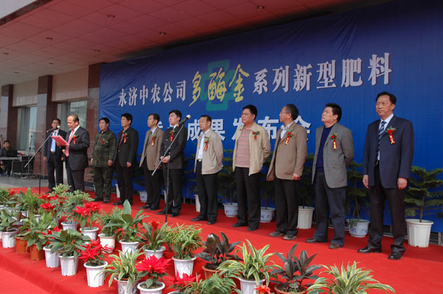 ? ? ?4月18日,永濟(jì)中農(nóng)化工有限公司(簡(jiǎn)稱“永濟(jì)中農(nóng)”)在其公司本部隆重召開(kāi)“多酶金系列新型肥料質(zhì)量成果發(fā)布會(huì)”。永濟(jì)市委副書(shū)記、市長(zhǎng)朱曉東、永濟(jì)市人大主任楊文寧、永濟(jì)市政協(xié)主席袁宏軒,以及永濟(jì)市工商、質(zhì)檢、農(nóng)委、經(jīng)信局、土肥站等職能部門(mén)領(lǐng)導(dǎo)受邀出席會(huì)議,來(lái)自全國(guó)30多個(gè)省、市、自治區(qū)的客戶代表和20余家媒體單位參加會(huì)議。??? 發(fā)布會(huì)上,首先由中國(guó)質(zhì)量萬(wàn)里行雜志社社長(zhǎng)汪鶴林的受托代表宣讀了賀信,隨后永濟(jì)中農(nóng)總經(jīng)理劉乃倉(cāng)詳細(xì)介紹了企業(yè)發(fā)展方向和新產(chǎn)品研發(fā)情況。劉乃倉(cāng)在發(fā)言中提到,永濟(jì)中農(nóng)經(jīng)過(guò)近30年的探索,走過(guò)了由原來(lái)的合成氨、碳銨,到生產(chǎn)普通尿素、多肽尿素、多酶金尿素的差異化產(chǎn)品更新之路。特別是目前在國(guó)際肥業(yè)市場(chǎng)占有領(lǐng)先地位的多酶金尿素,為多種肽酶復(fù)合體及高分子有機(jī)聚合物經(jīng)過(guò)螯合而成的含有機(jī)型態(tài)的高能量尿素,是真正實(shí)現(xiàn)了更新和升級(jí)換代的尿素產(chǎn)品,無(wú)論原料的提取配方,還是技術(shù)工藝均居國(guó)內(nèi)領(lǐng)先地位。發(fā)布會(huì)上,中國(guó)質(zhì)量萬(wàn)里行雜志社還授予永濟(jì)中農(nóng)“質(zhì)量信譽(yù)跟蹤單位”榮譽(yù)稱號(hào),山西農(nóng)業(yè)大學(xué)資源環(huán)境學(xué)院院長(zhǎng)洪堅(jiān)平、永濟(jì)市市長(zhǎng)朱曉東為永濟(jì)中農(nóng)產(chǎn)學(xué)研基地揭牌。??? 最后,朱曉東市長(zhǎng)發(fā)表講話。他指出,多酶金系列新型肥的成功研發(fā)投產(chǎn),體現(xiàn)了永濟(jì)中農(nóng)具有抓住經(jīng)濟(jì)結(jié)構(gòu)變化和產(chǎn)業(yè)升級(jí)機(jī)遇的長(zhǎng)遠(yuǎn)戰(zhàn)略眼光,反映出企業(yè)敏銳的市場(chǎng)洞察力和強(qiáng)烈的社會(huì)責(zé)任感,更為永濟(jì)市傳統(tǒng)企業(yè)的轉(zhuǎn)型升級(jí)起到了良好的示范促進(jìn)作用。他代表永濟(jì)市委、市政府向永濟(jì)中農(nóng)全體員工,特別是參與研發(fā)工作的同志們表示衷心的感謝和親切的慰問(wèn)!朱曉東市長(zhǎng)希望永濟(jì)中農(nóng)再接再厲,繼續(xù)加大技術(shù)研發(fā)力度,不斷增強(qiáng)企業(yè)和產(chǎn)品的市場(chǎng)競(jìng)爭(zhēng)力,努力實(shí)現(xiàn)從基礎(chǔ)化工向高端新型化工轉(zhuǎn)變;從生產(chǎn)同質(zhì)化、初級(jí)化產(chǎn)品向差異化、精細(xì)化轉(zhuǎn)變;從粗放型生產(chǎn)向資源節(jié)約型、環(huán)境友好型生產(chǎn)轉(zhuǎn)變,從而在提高核心競(jìng)爭(zhēng)力的同時(shí),不斷推進(jìn)企業(yè)轉(zhuǎn)型升級(jí)。??? 發(fā)布會(huì)結(jié)束后,與會(huì)領(lǐng)導(dǎo)和嘉賓以及經(jīng)銷商代表、新聞媒體記者一同參觀了產(chǎn)品展示廳和新產(chǎn)品生產(chǎn)線。