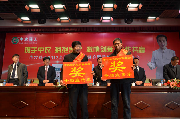 ?? ?最后,由中農(nóng)舜天常務副總經(jīng)理楊鳳柱宣讀了《關(guān)于兌現(xiàn)2011年營銷獎勵政策的決定》,對邱振炎、王步峰等40多位優(yōu)秀經(jīng)銷商進行了隆重表彰。