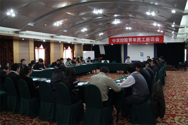 ??? 為聽取青年員工對公司發(fā)展的意見和建議,了解青年員工職業(yè)發(fā)展中的想法和困難,中農(nóng)控股于2010年11月3日下午2:00在公司東四樓會議室召開青年員工座談會,受公司領(lǐng)導(dǎo)委托,由人力資源部經(jīng)理王寶清主持本次會議,公司33名在京青年員工參加了本次會議。